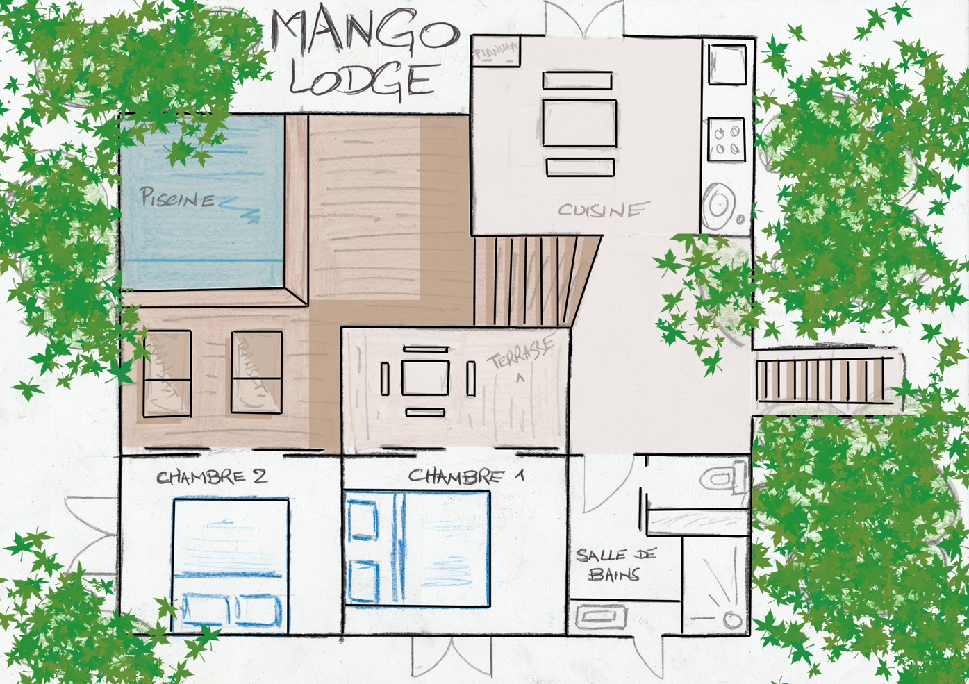Dans un parc arboré de 5000m², lové au creux de luxuriants manguiers Mango Lodge vous apportera le calme et la tranquillité dont vous rêvez pour vos vacances. En pleine nature, au cœur d’une végétation tropicale, vous profiterez des fruits du jardin : mangues, avocats, bananes, papayes…selon la saison.